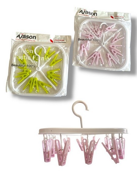Вішалка для шкарпеток та білизни, пластик., прямокут., 12 прищіпок.(11*21,5см) №6036 (5803) (120) (шт.)