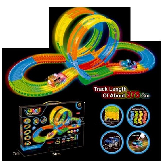 Трек GD-8135A (24шт) 375см, светится в темноте,машина9,5см-свет,135дет,на бат-ке,в кор-ке,54-35-7см (шт.)