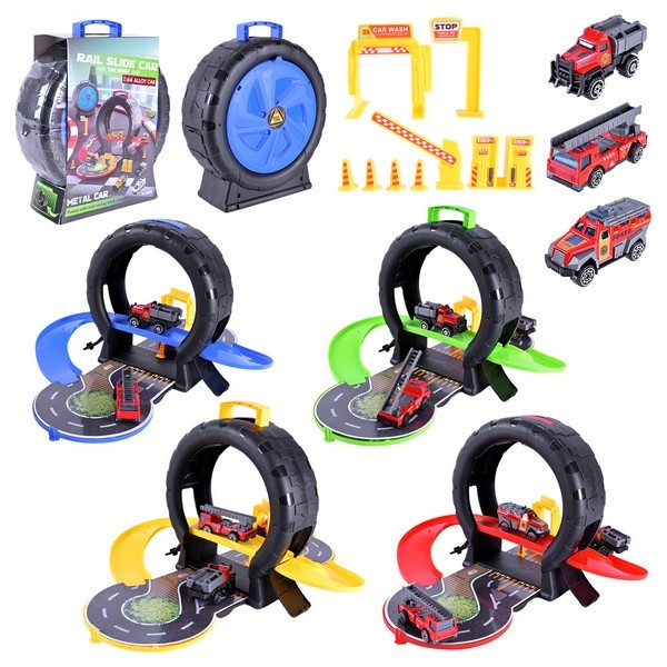 Трек T801F-1 (12шт) рухливі деталі/важелі, 4 машинки 3см, в кор-ці, 23,5-23,5-10,5см (шт.)