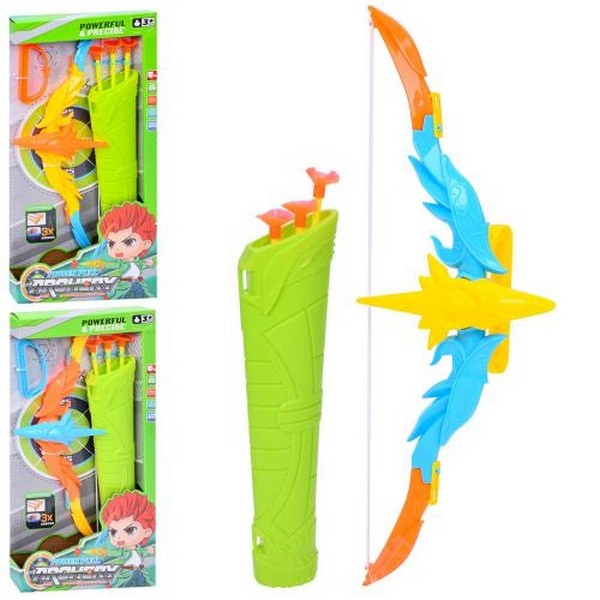 Лук 700-4 (60шт) 35,5см, стріли-присоски 3шт, колчан, мікс кольорів, в кор-ці, 19-40-3,5см (шт.)