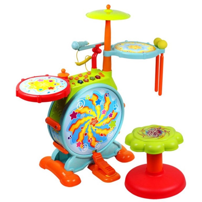 Барабанна установка 666 (6шт) стільчик, мікрофон, муз, св, зв, палички, на бат, кор, 43,5-56,5-12,5с (шт.)