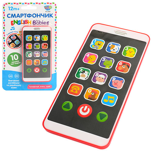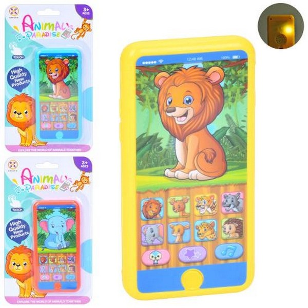 Телефон M 3487 (72шт)навч, назви тварин,вірші,муз(укр/анг), на бат-ці, на листі,13-23-2см (шт.)
