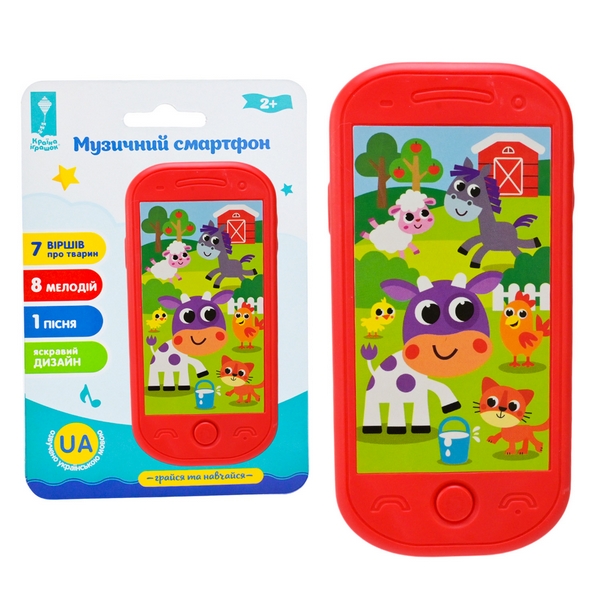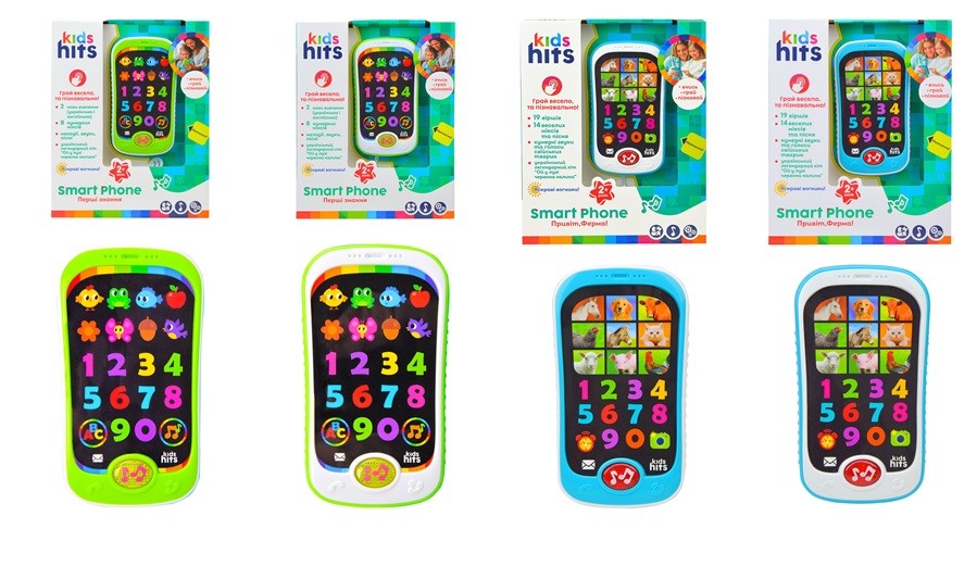 Разместить в 1 или 2 колонкиJT Телефон 0103 UK (60шт) "Розумний телефон-УКР", 7 функцій, муз, світло, 2кол, на бат-ці, в кор-ці (шт.)