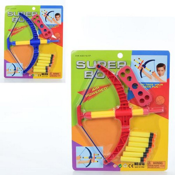 Лук 016 (72шт) д25см-ш30см, м'які кулі-присоски 6шт, 2 кольори, на листі, 29-36,5-3см (шт.)