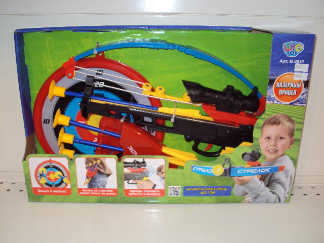 Арбалет M 0010 (12шт) стріли на присосках, приціл, лазер, мішень, сагайдак, у кор-ці, 46,5-29-7см (шт.)