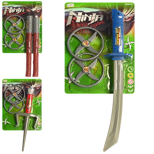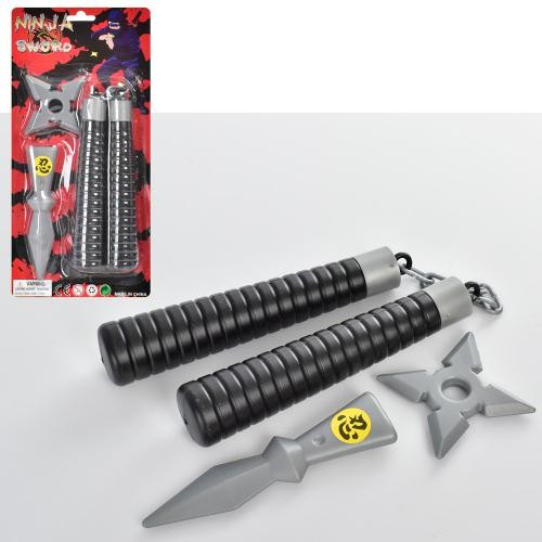 Набір ніндзя 6631-32-33 (72шт) сюрікен2шт, 3 види (нунчаки,меч,сай, на листі,21,5-47-6см (шт.)