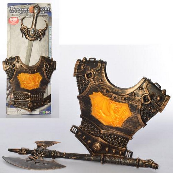 Набір зі зброєю 208-208-5 (48шт) лицаря, обладунки, 2 види (меч, сокира), на листі, 27,5-54,5-3см (шт.)