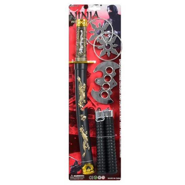 Набір ніндзя 8424 (72шт) меч 43см, нунчаки, сюрікени, на листі, 50-15,5-3,5см (шт.)