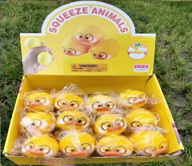 Iграшка MS 4439 (120шт) качка, 6см, антистрес, мішура, у пакеті, 12шт в дисплеї, 28-21-8,5см (шт.)
