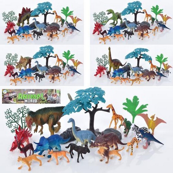 Фігурка 333-41-47 (60шт) динозавр, дикі тварини, дерева, 5видів, в кульку, 25-24-7 (шт.)