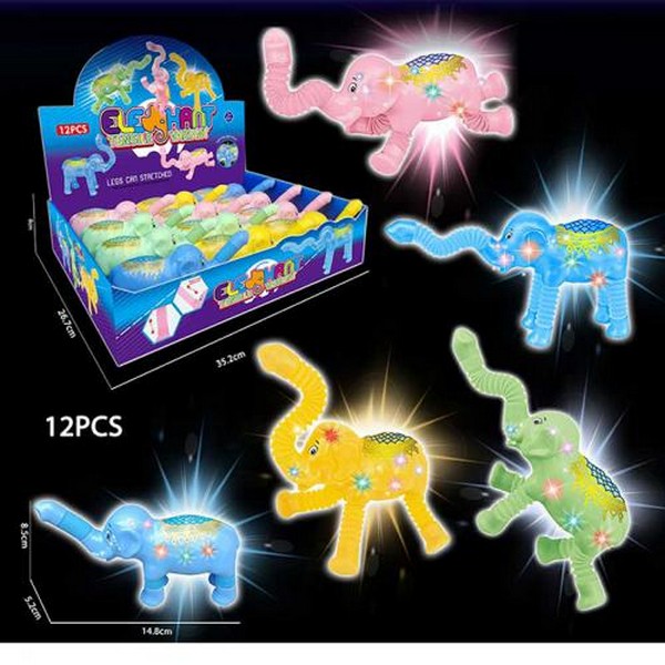 Гра LP-1512 (144шт) слоник, 15см, антистрес, розтягується(ноги, хобот), світло, на бат(табл),12шт (шт.)