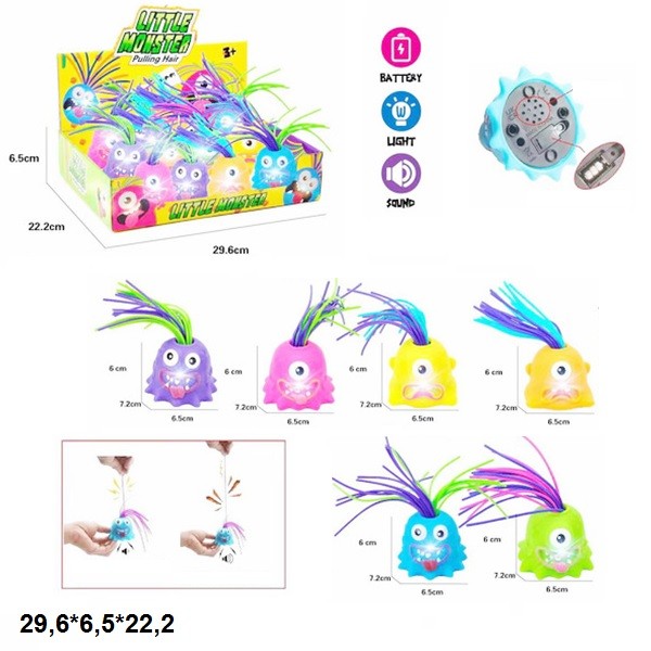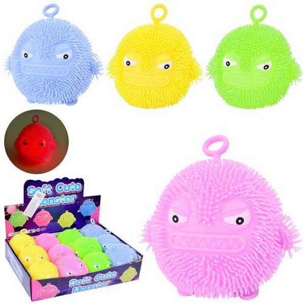 Е-їжачок MS 3937 (144шт) антистрес, монстр 8см, світло, коротка ручка, бат(табл), 12шт(4кольори) в д (шт.)