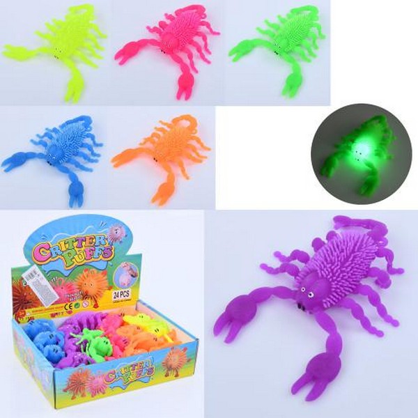 Е-їжачок MS 4005 (144шт) антистрес, 15см, скорпіон, світло, на бат-ці(табл), 24шт (6 кольорів) в дис (шт.)