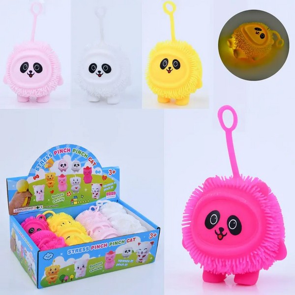 Е-їжачок MS 4022 (144шт) антистрес, панда 7см, світло, довга ручка, бат(табл), 12шт(4кольори) в дисп (шт.)
