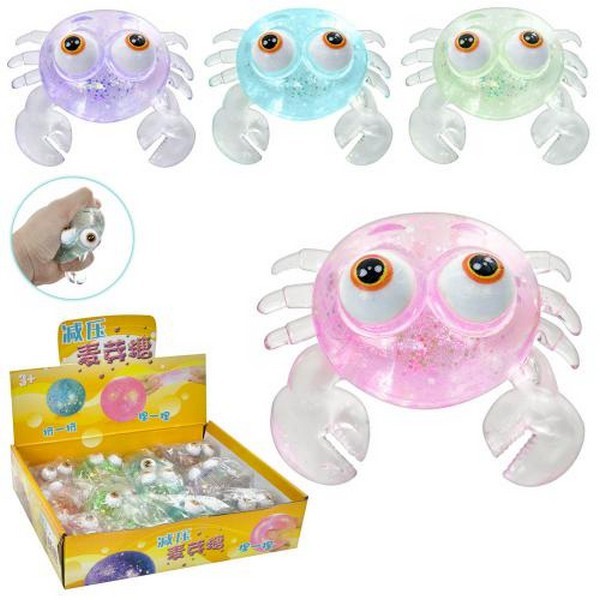 Іграшка MS 3709 (144шт) краб, 8см, антистрес, глітер, в пакет, 12шт(4кольор) в дисплеї, 26-6,5-20см (шт.)