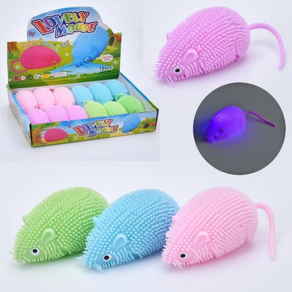 Е-їжачок MS 4011 (144шт) миша, 9см, світло, 4 кольори, бат(табл), 12шт в дисплеї, 25-5-19см (шт.)