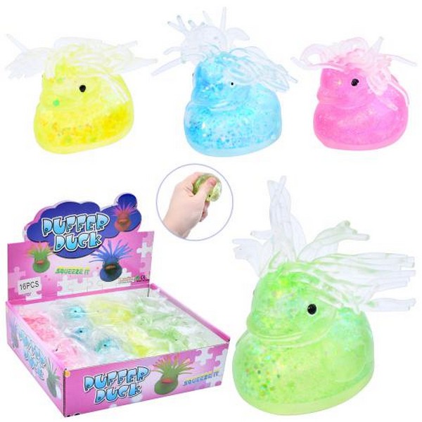 Іграшка MS 4008 (144шт) качка, 5см, антистрес, тягнеться, гліттер, 4кольори, у пакеті, 16шт в диспл. (шт.)