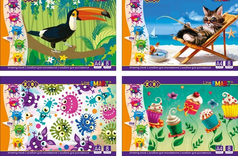 Альбом для малювання, А4, 8 аркушів, 100 г/м2, на скобі, SMART Line ZB.1413 (20/240шт) (шт.)