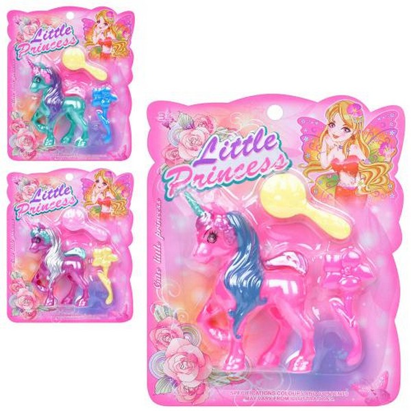 Конячка I970-1 (300шт) єдиноріг 10см, гребінець, мікс кольорів, на листі, 14,5-18,5-3см (шт.)