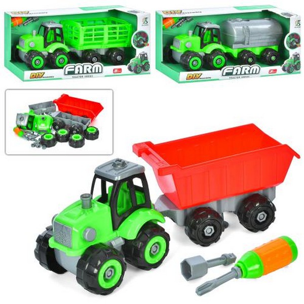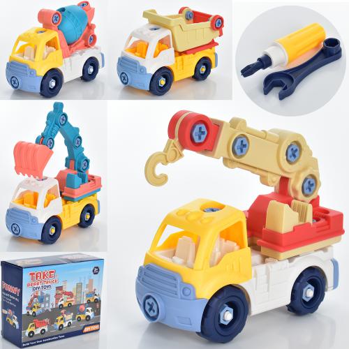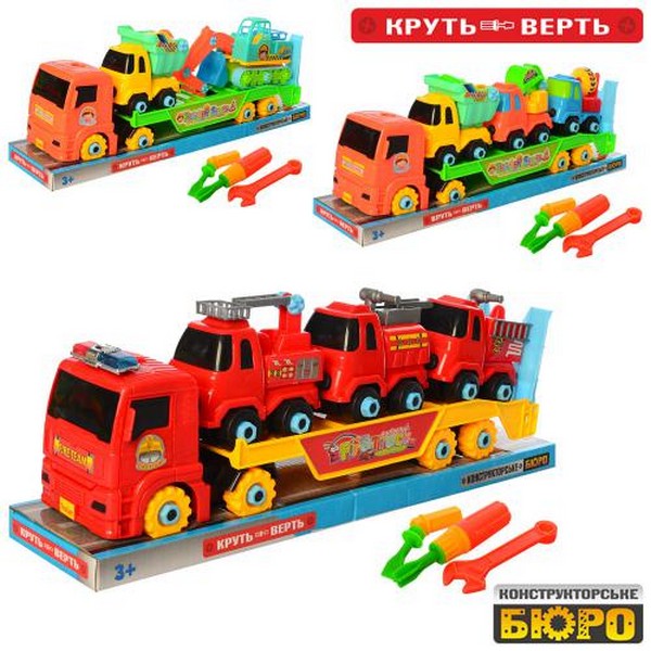 Конструктор 8866 (24шт) на шурупах, трейлер 39см, будтехніка 2шт, викрутка, гайк.ключ, 2 види, у слю (шт)