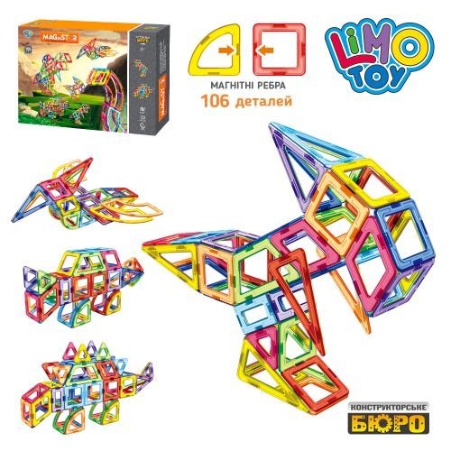 Конструктор LT2004 (4шт) магнітний, динозаври, 106дет, у кор-ці, 55-37-8см (шт.)