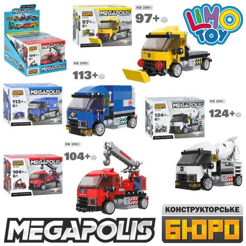 Конструктор KB 209 (72шт) спецтехніка, від 82дет, 4шт (4вида) у дисплеї, 19,5-13,5-22см (шт.)