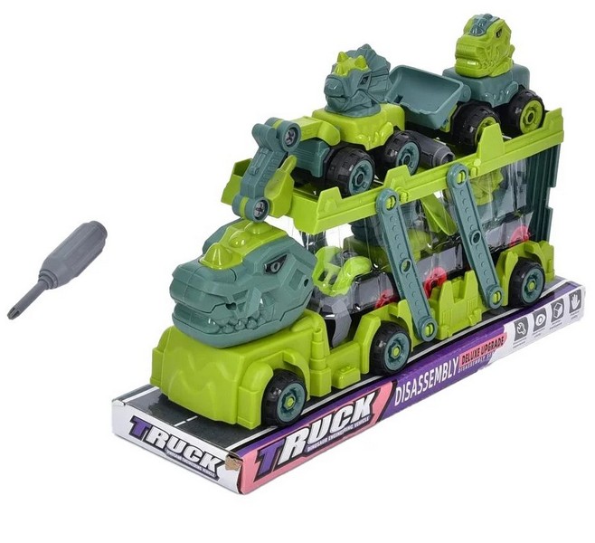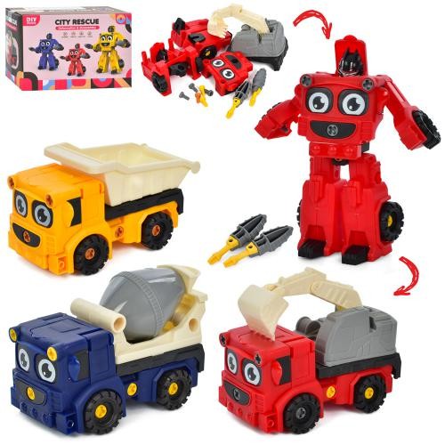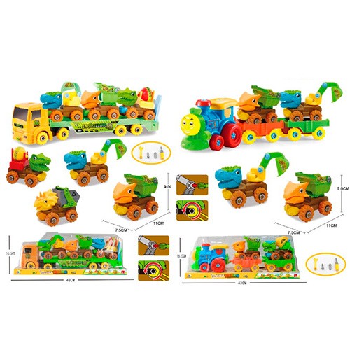 Конструктор 8883-85 (24шт) на шурупах, машинка-динозавр 11см, інструмент., 2 види (поїзд, трейлер), (шт.)