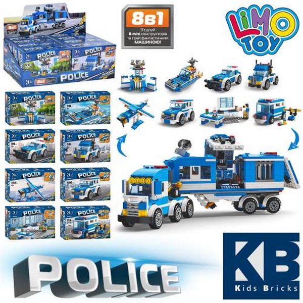 Конструктор KB 217 (96шт) поліцейська серія, 2в1, від 98до118дет, 8 видів (8шт) в дисплеї 38-17-13см (шт.)