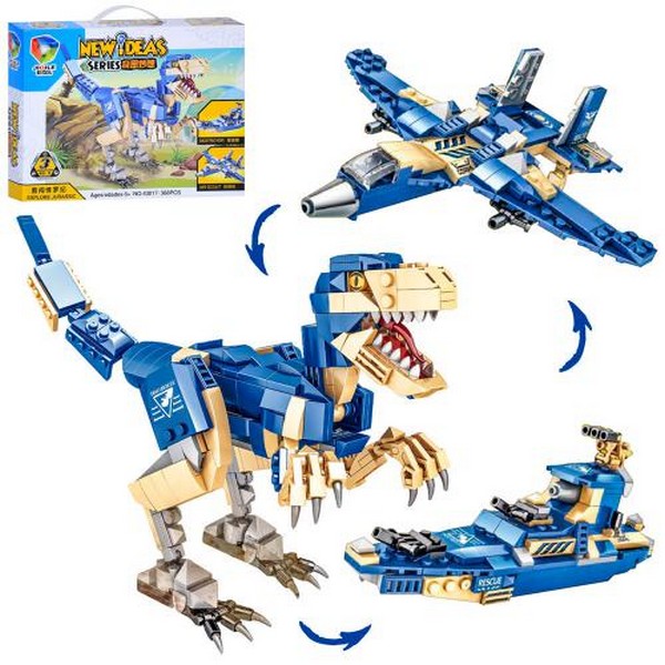 Конструктор E43017 (24шт) 3в1 (динозавр, літак, катер), 368 деталей, в кор-ці, 34-26-5,5см (шт.)