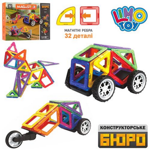 Конструктор LT3006 (24шт) магнітний, колеса, 32 дет., в кор-ці, 29-24,5-8 см. (шт.)