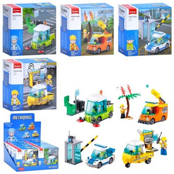 Конструктор KB 102 (120шт) транспорт, фігурка, від 73дет,у кор-ці,8шт (4 види) у дисплеї,25,5-9-18см (шт.)