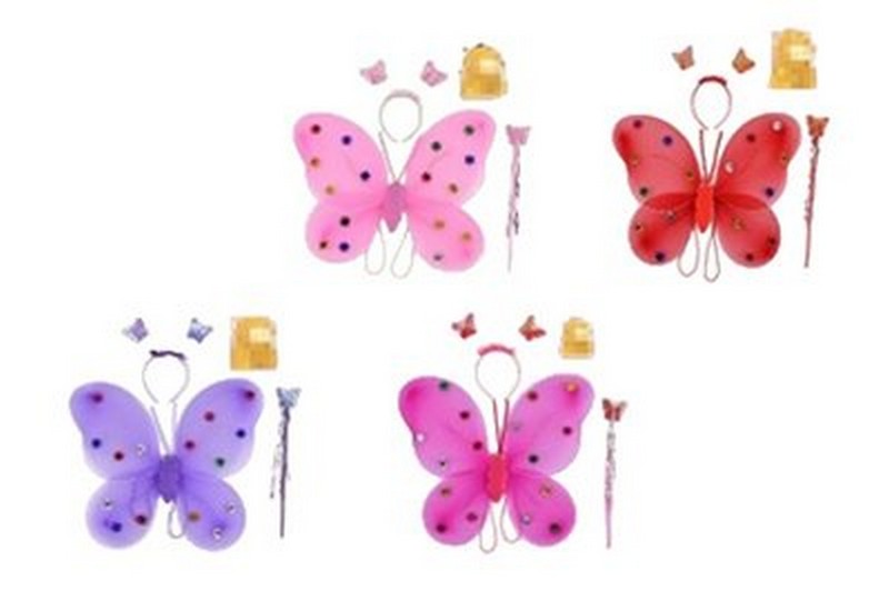 Карнавальний костюм арт. K16803 (300шт) крила метелика, обруч, паличка, зі світлом, 6 кольорів у пак (шт.)