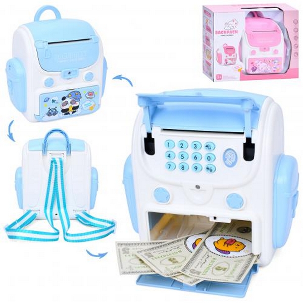 Банківський термінал 17529 (18шт) 18,5-17-9,5см,рюкзак, код, звук, музика, затягує купюри,2 види, на (шт.)