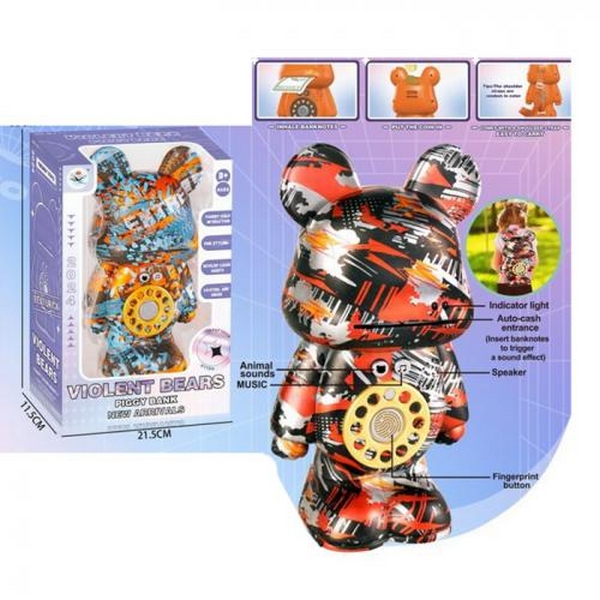 Банківський термінал TZ-56B (24шт) ведмедик, 29см, сейф/скарбничка, відбиток, музика,світло,монети,2 (шт.)