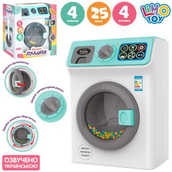 Пральна машина M 4608 I UA (12шт) 24см, звук-укр, світло, обертовий барабан, на бат-ці, в кор-ці, 23 (шт.)