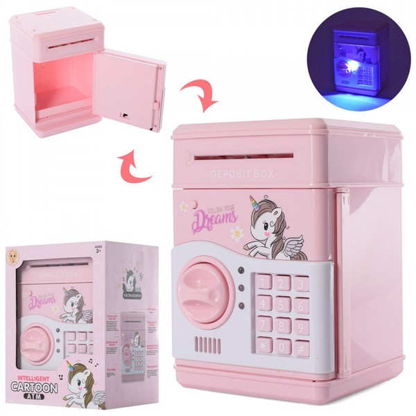 Скарбничка MK 5027 (8шт) 23см, сейф з кодом, затягує купюри, звук, світло, на бат-ці, 2 кольори, в к (шт.)