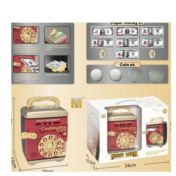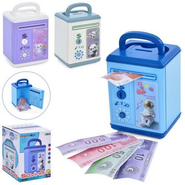 Скарбничка MK 3916 (36шт) 18см, сейф, звук, світло, затягує купюри, мікс вигляд, на бат, кор, 13,5-1 (шт.)