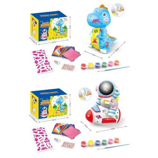 Скарбничка MK 5400 (24шт) набір для творчості, фарби, наліпки, 2 види(динозавр 20см, космонавт 18см) (шт.)