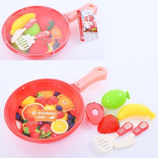 Продукти 4013D (144шт) на липучці, 3шт, сковорідка, ніж, 3 види (овочі/фрукти), в сітці, 20-12-6см (шт.)