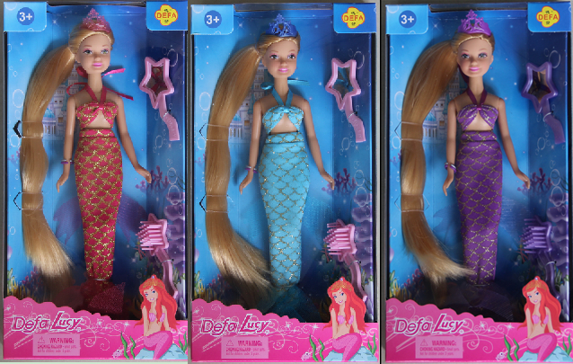 Лялька DEFA 8236 (48шт) русалка, 22см, довге волосся, гребінець, дзеркало, 3 кольори, в кор-ці, 14-2 (шт.)