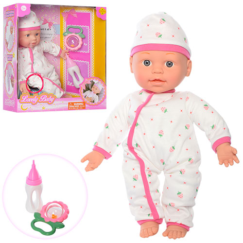 Пупс M 5928 UA (24шт) 37см, п'є-пісяє, горщик, пляшечка, посуд, брязкальце, в кор-ці, 23,5-40-11см (шт.)