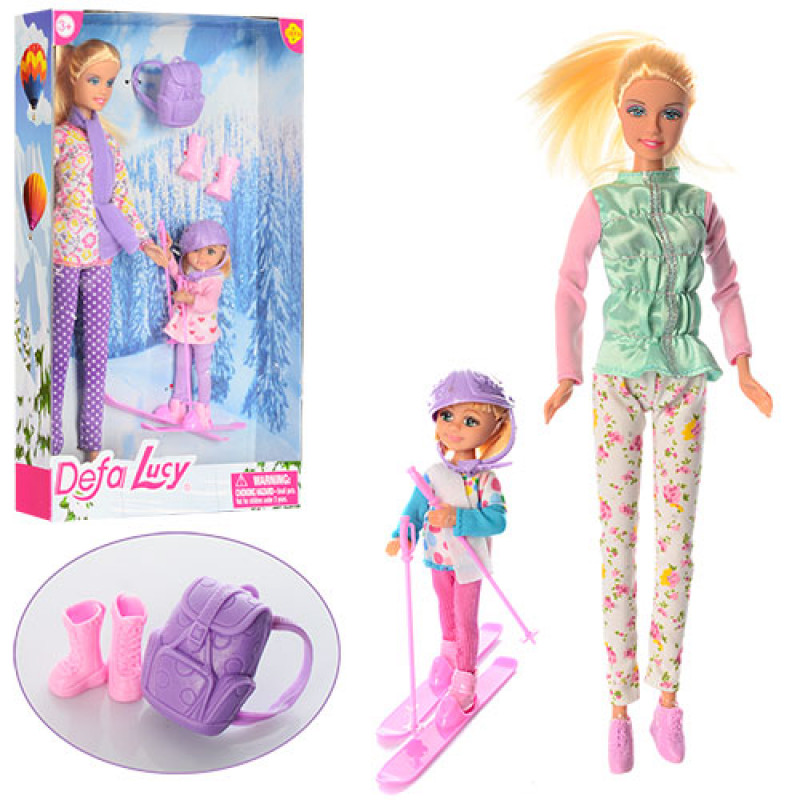 Лялька DEFA 8356 (24шт) 29см, дочка 3см, лижі, рюкзак, 2 види, в кор-ці, 20,5-32-5см (шт.)