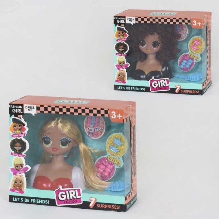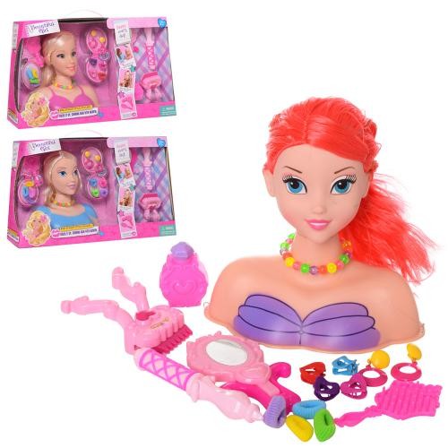 Лялька DEFA 20957 (12шт) голова для зачісок, гребінець, аксесуари, 2 кольори, в кор-ці, 29-28-14см (шт.)