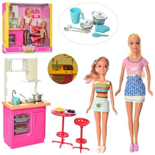 Лялька DEFA 8442-BF (10шт) 29,5см, дочка 22см, кухня 31-14см, посуд, св, 2в, бат-таб, кор, 36,5-31,5 (шт.)