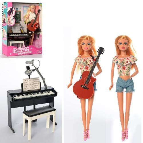 Лялька DEFA 8453-BF (24шт) 29см, піаніно16см, стілець,гітара, муз,2види, бат(таб), в кор-ці, 26-32-7 (шт.)