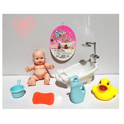 Пупс H333-3 (180шт) 8см, ваночка 18см, каченя, ковшик, губка, в кульку, 22-15-4см (шт.)
