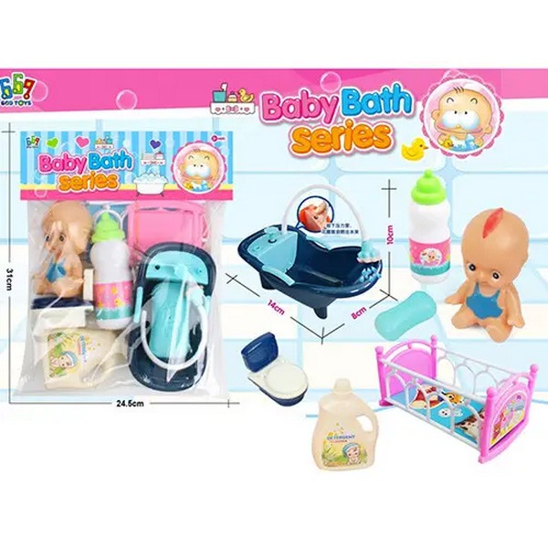 Пупс 669-601A1 (72шт) 10см, ліжечко, мило, ляшечка, ванночка, унітаз, 2 кольори, в пакеті, 22-29-6см (шт.)