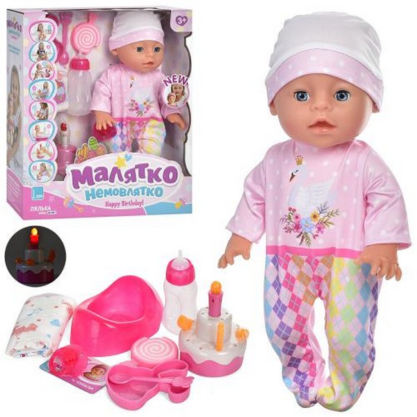 Пупс YL1959O-S-UA (12шт) 34см, торт, пляшечка, підгуз, соска, муз, св, п'є-пісяє, на бат, кор, 32-36 (шт.)