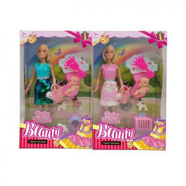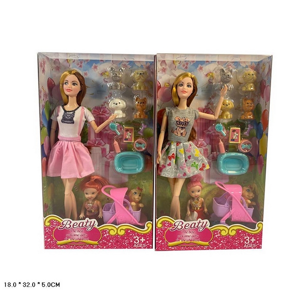 Лялька DEFA 8358-BF (36шт) 28см, пупс 8см, коляска 10см, аксесуари, 2 види, в кор-ці, 18-32-6,5см (шт.)