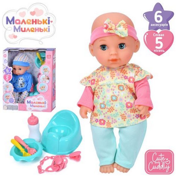 Пупс M 5933 I UA (24шт) 28см, п'є-пісяє, музика(укр), 5 пісень, горщик, пляшечка, посуд, соска, 2 ви (шт.)